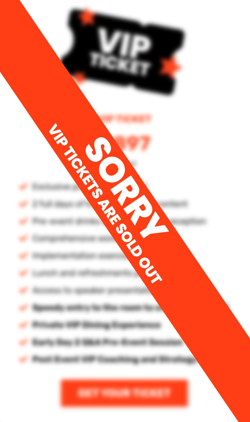 Grab one of the limited number for VIP tickets and attend a Private VIP Dinner on Day 1, get early entry to the room on both days and a private Q&A session on the morning of Day 2 before we start.